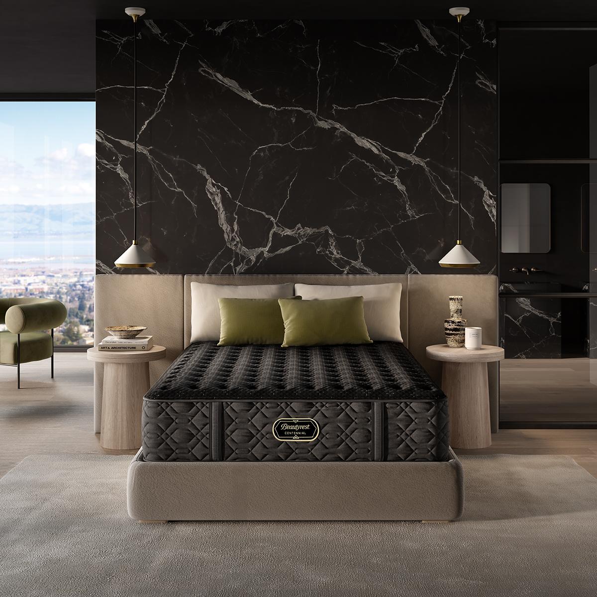 The Beautyrest Centennial Ares mattress offers firm support with layers of Self-Response™ Latex and firm gel foams, complemented by Sleep Climate Technology for a cool sleep surface.